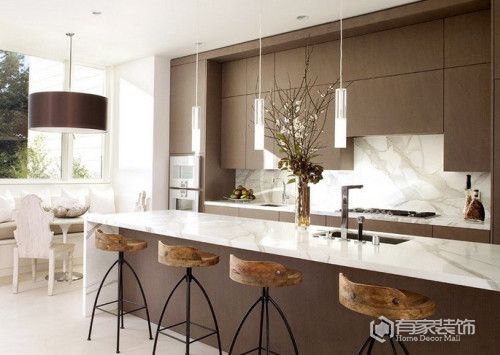 很多房子內部也是配置了吧臺,而且做工還非常的不錯,但是位置的選擇上出現(xiàn)了問題導致整個效果非常的差。廈門裝修公司給的建議是一般可以考慮在廚房的對面來設置吧臺,這樣一方面可以作為一個屏擋來遮蔽廚房;另外一方面距離食物源頭比較近,整體上可以劃分成一個大區(qū)域,便于打掃和管理。