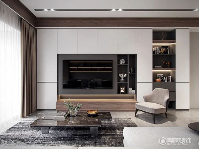 定制柜不僅要有美觀的外觀,還要滿足實際的功能需求。根據收納需求,設置抽屜、隔板等儲物空間。柜子的布局要合理,方便取放物品。電視是電視墻的重要組成部分,需要廈門裝潢設計公司考慮擺放和安裝位置。一般來說,電視應放置在定制柜的中間或者稍偏上位置,以便于觀看。確保電視的電源和信號線,能夠方便地接入。定制柜做滿電視墻后,可能影響電視的通風和散熱。